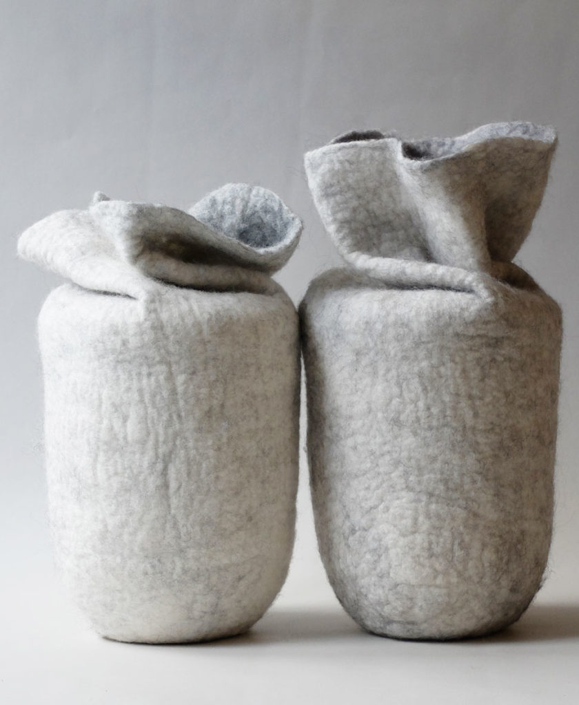 Vorheriger Nächster Modell D Naturgrau von UaF 20/01/2020 Naturfarbene Urnen Merinowolle, Gotlandvlies, Neuseelandvlies, Höhe: ca. 30–34 cm Wensleydale Wolle, ausladender Verschluss, ca. 40 cm
